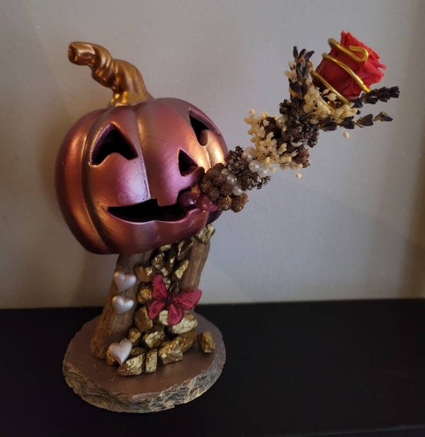 Citrouille fumeuse de fleurs séchées et 1 mini rose eternelle